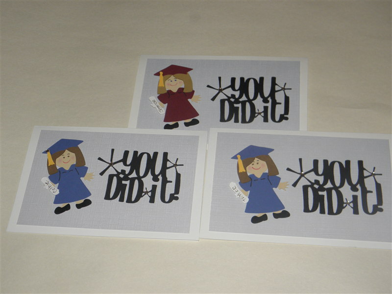 Lastly, these are the graduation cards I made for this years graduates using the Paper Doll Dress Up cartridge. For the wording on the outside and inside I used the George and Basic Shapes cartridge.